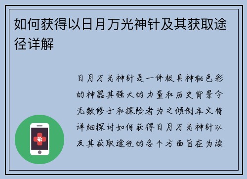 如何获得以日月万光神针及其获取途径详解